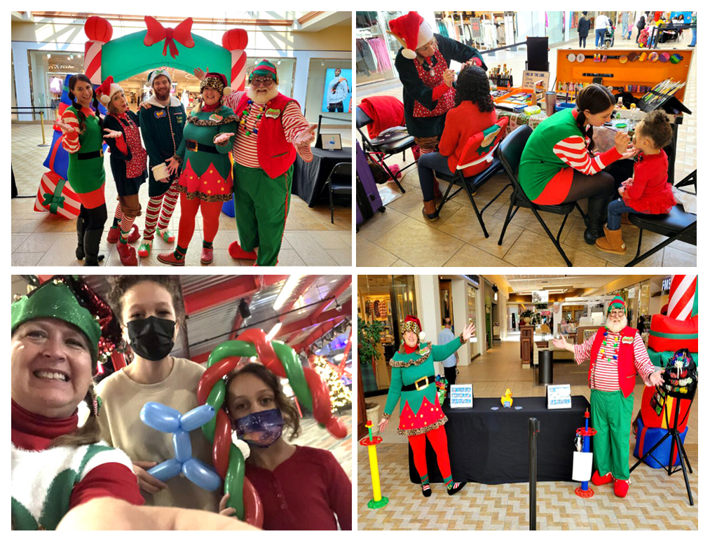 We also provide balloon twisting, face painting, glitter tattoos and games with one of our many Elves.