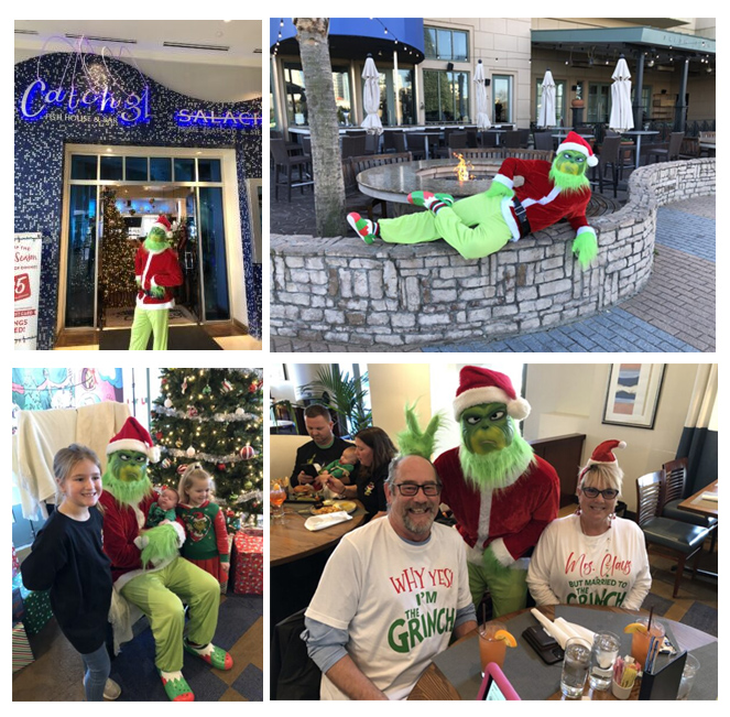 You can also have the Grinch come to your party or event. He is super sneaky, very interactive and lots of fun. Great photo opportunities. Call for more details.