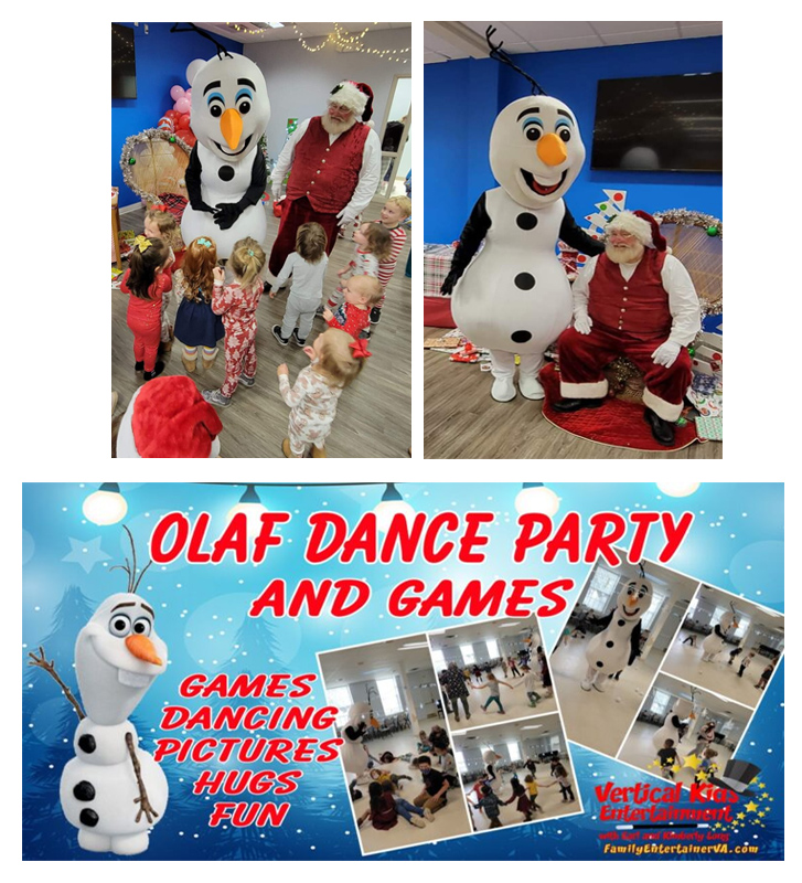 You can also have Olaf visit your event this Christmas season. He can give hugs, have a dance party and have pictures taken with the kids. We have other characters for other events also.